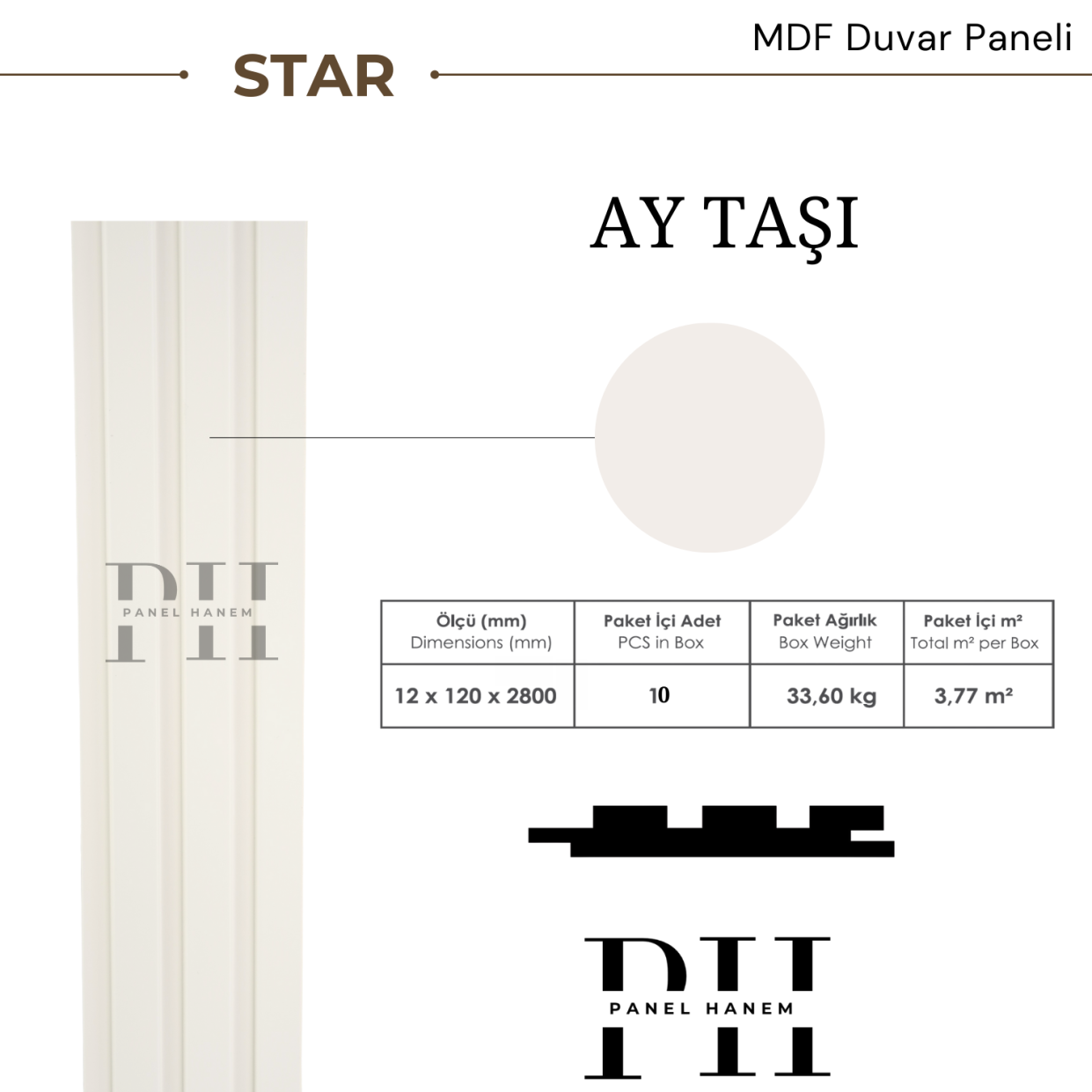 MDF duvar paneli, iç mekân dekorasyonunda estetik ve modern bir görünüm sunmak amacıyla üretilmiştir. Star 1212 Aytaşı modeli, özgün deseni ve ferah renk tonu ile yaşam alanlarına şıklık katar. Dayanıklı MDF malzemeden üretilmiş olup uzun ömürlü kullanım sağlar. Kolay uygulanabilir yapısı sayesinde duvarlarınıza pratik bir şekilde monte edilebilir. Temizliği kolaydır ve dekoratif amaçlı iç mekân kullanımına uygundur.