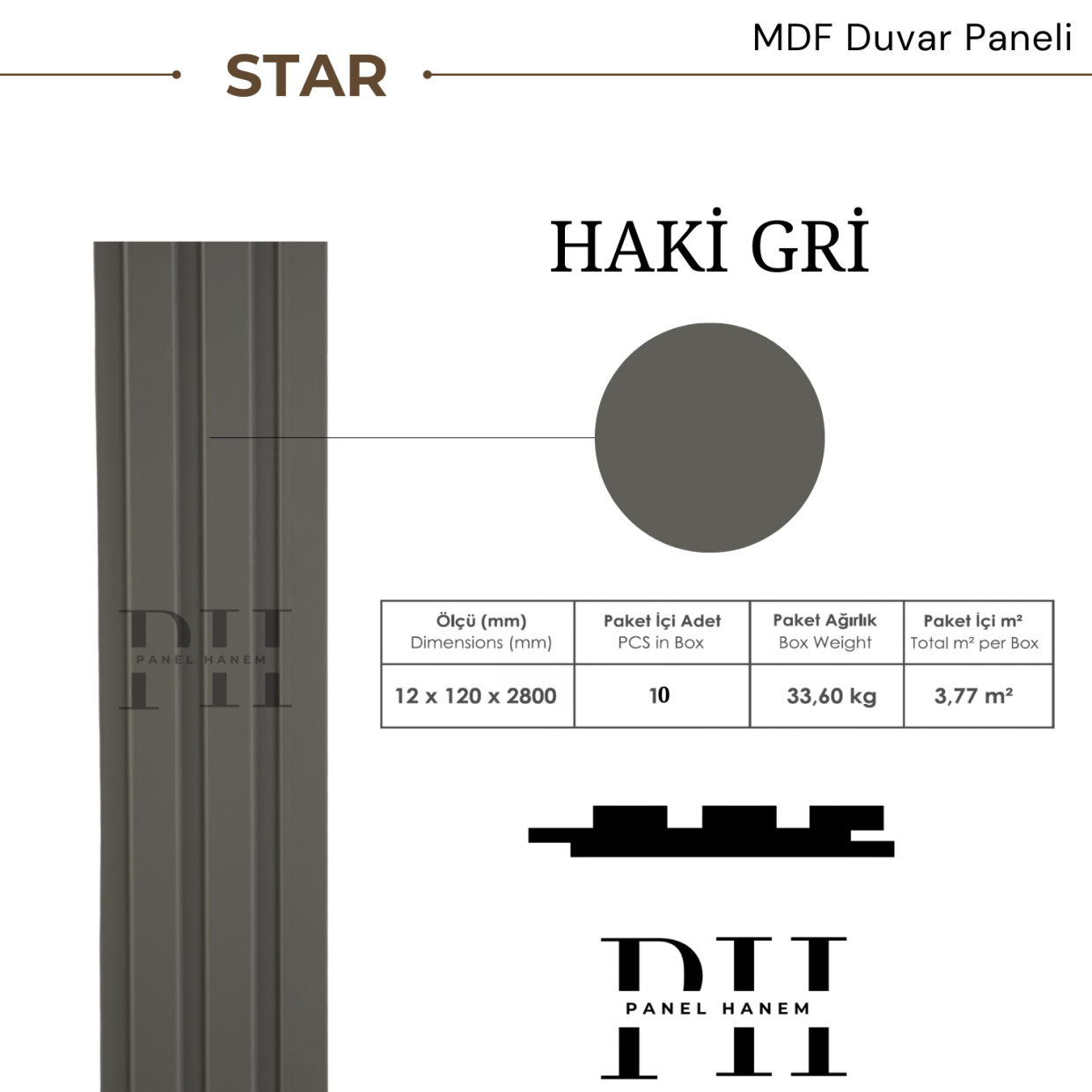 MDF duvar paneli, iç mekân dekorasyonunda estetik ve modern bir görünüm sunmak amacıyla üretilmiştir. Star 1212 Haki Gri modeli, özgün deseni ve ferah renk tonu ile yaşam alanlarına şıklık katar. Dayanıklı MDF malzemeden üretilmiş olup uzun ömürlü kullanım sağlar. Kolay uygulanabilir yapısı sayesinde duvarlarınıza pratik bir şekilde monte edilebilir. Temizliği kolaydır ve dekoratif amaçlı iç mekân kullanımına uygundur.