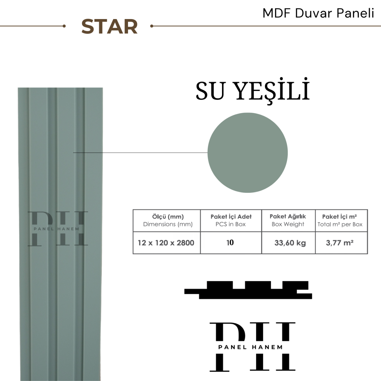MDF duvar paneli, iç mekân dekorasyonunda estetik ve modern bir görünüm sunmak amacıyla üretilmiştir. Star 1212 Su Yeşili modeli, özgün deseni ve ferah renk tonu ile yaşam alanlarına şıklık katar. Dayanıklı MDF malzemeden üretilmiş olup uzun ömürlü kullanım sağlar. Kolay uygulanabilir yapısı sayesinde duvarlarınıza pratik bir şekilde monte edilebilir. Temizliği kolaydır ve dekoratif amaçlı iç mekân kullanımına uygundur.