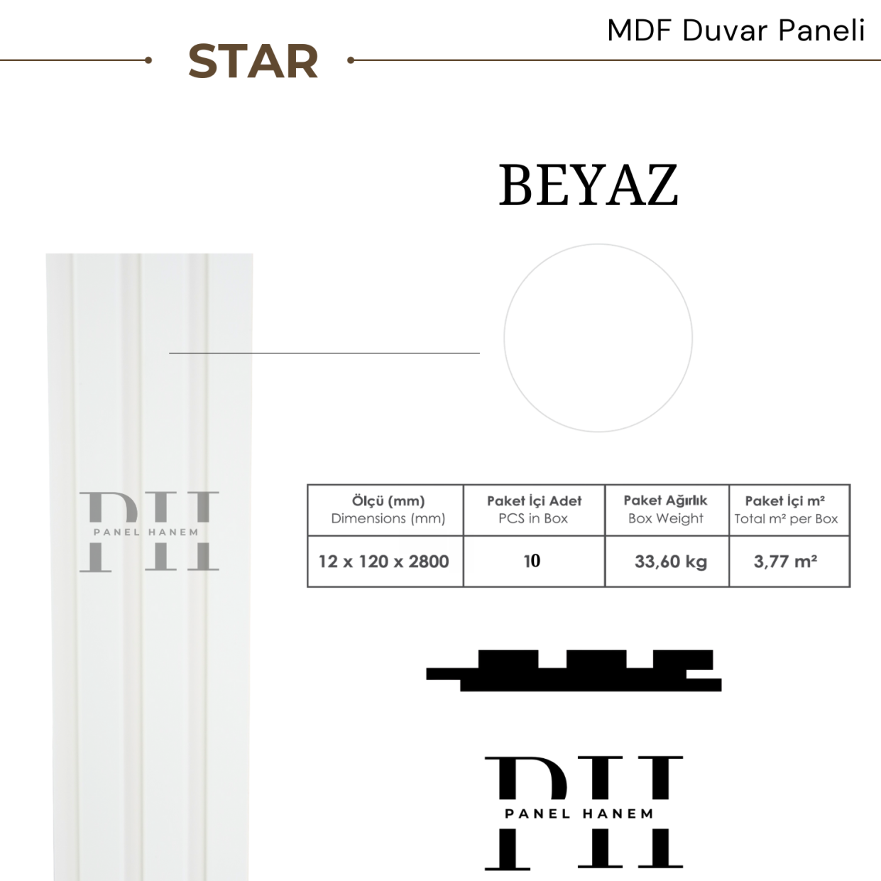 MDF duvar paneli, iç mekân dekorasyonunda estetik ve modern bir görünüm sunmak amacıyla üretilmiştir. Star 1212 Beyaz modeli, özgün deseni ve ferah renk tonu ile yaşam alanlarına şıklık katar. Dayanıklı MDF malzemeden üretilmiş olup uzun ömürlü kullanım sağlar. Kolay uygulanabilir yapısı sayesinde duvarlarınıza pratik bir şekilde monte edilebilir. Temizliği kolaydır ve dekoratif amaçlı iç mekân kullanımına uygundur.