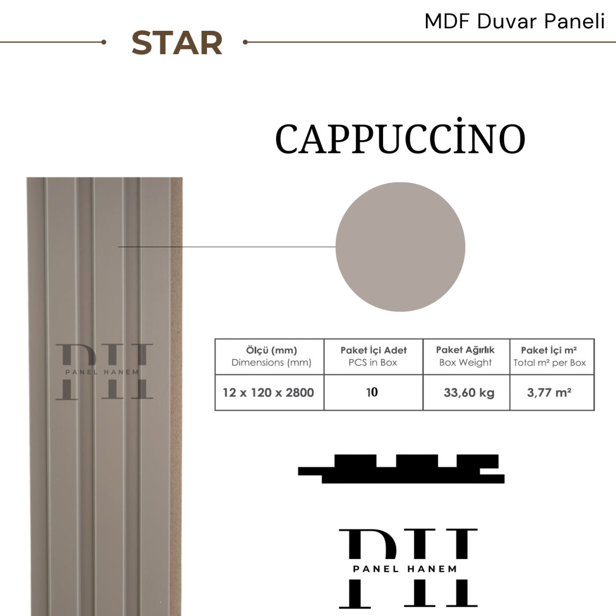 MDF duvar paneli, iç mekân dekorasyonunda estetik ve modern bir görünüm sunmak amacıyla üretilmiştir. Star 1212 Cappuccino modeli, özgün deseni ve ferah renk tonu ile yaşam alanlarına şıklık katar. Dayanıklı MDF malzemeden üretilmiş olup uzun ömürlü kullanım sağlar. Kolay uygulanabilir yapısı sayesinde duvarlarınıza pratik bir şekilde monte edilebilir. Temizliği kolaydır ve dekoratif amaçlı iç mekân kullanımına uygundur.